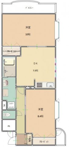 センチュリーアスカⅦ 5階 2DK 60.32㎡(現在入居中)